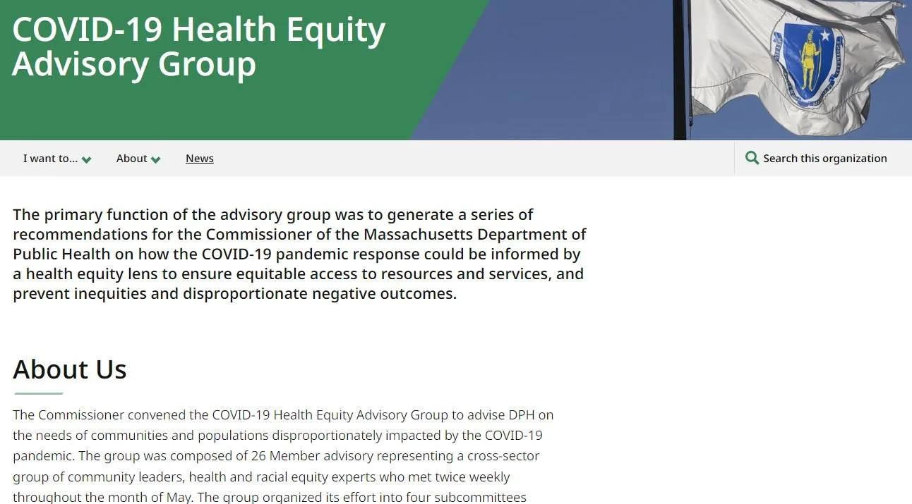 COVID-19 Resources Mass.gov: COVID-19 Vaccine Equity Initiative Learn More Mass.gov: COVID-19 Health Equity Advisory Group Learn More National Resource Center for Refugees, Immigrants, and Migrants (NRC-RIM): Get The Facts Campaign Learn More APHA: COVID-19 VACCINATION AN EQUITABLE RESPONSE Learn More