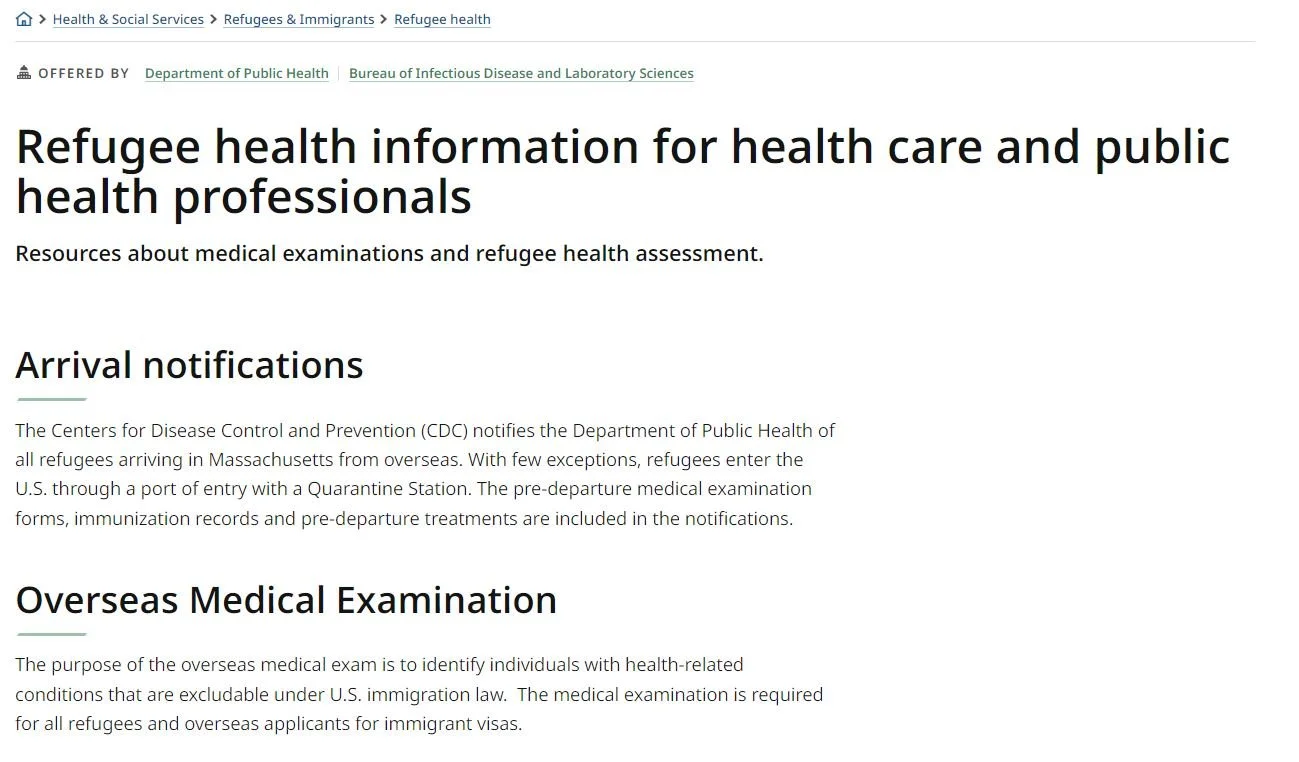 Mass.gov: Refugee Health Information For Health Care and Public Health Professionals