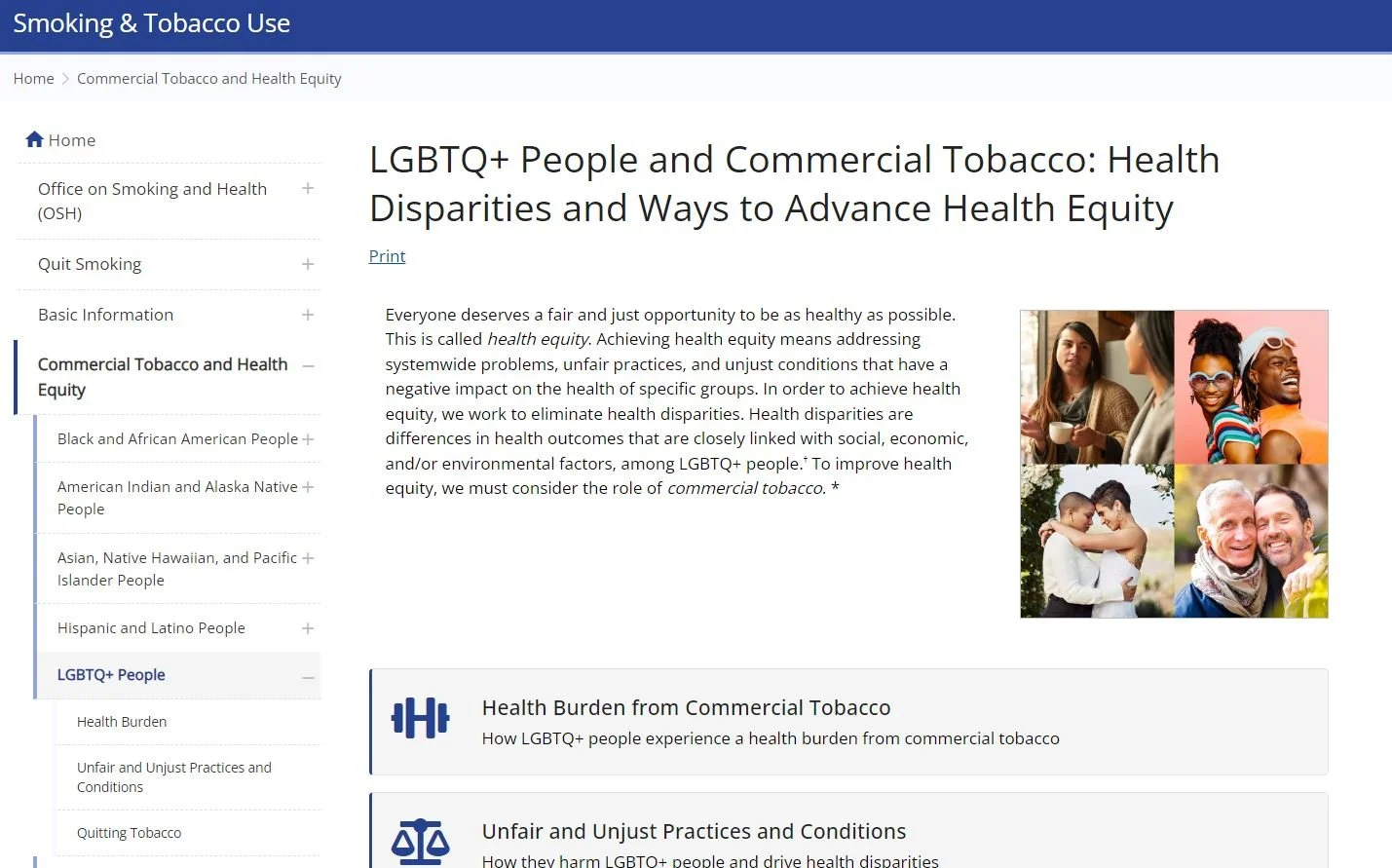 CDC: LGBTQ+ People and Commercial Tobacco: Health Disparities and Ways to Advance Health Equity
