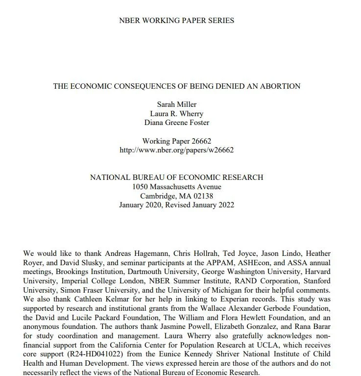 NBER: The Economic Consequences Of Being Denied An Abortion